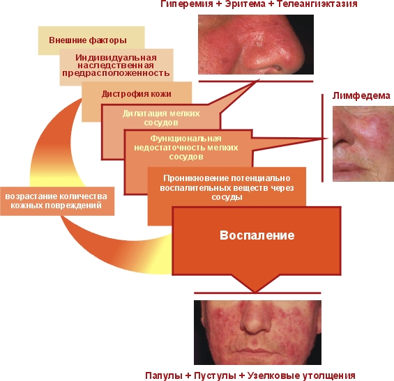Предположительная последовательность развития розацеа: