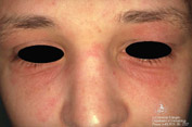 Clinical picture: Erythema, oedema, scaling and possibly lichenification of the eyelids/ periorbital area are characteristic. In some cases, only oedema of the eyelids is present.